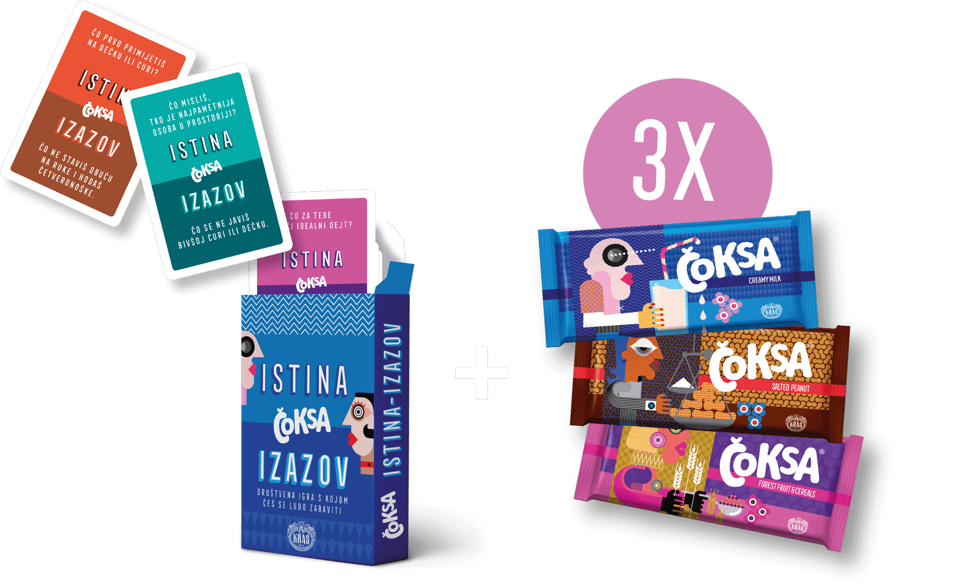 Poznatu igru boca istine i izazova začinili smo slatkim twistom i bocu zamijenili kartama. Ljubiteljima Čokse dali smo u zadatak da odaberu svoj omiljeni dizajn karte te osmisle istine i izazove, a najbolje smo od njih pretvorili u prave fizičke karte!